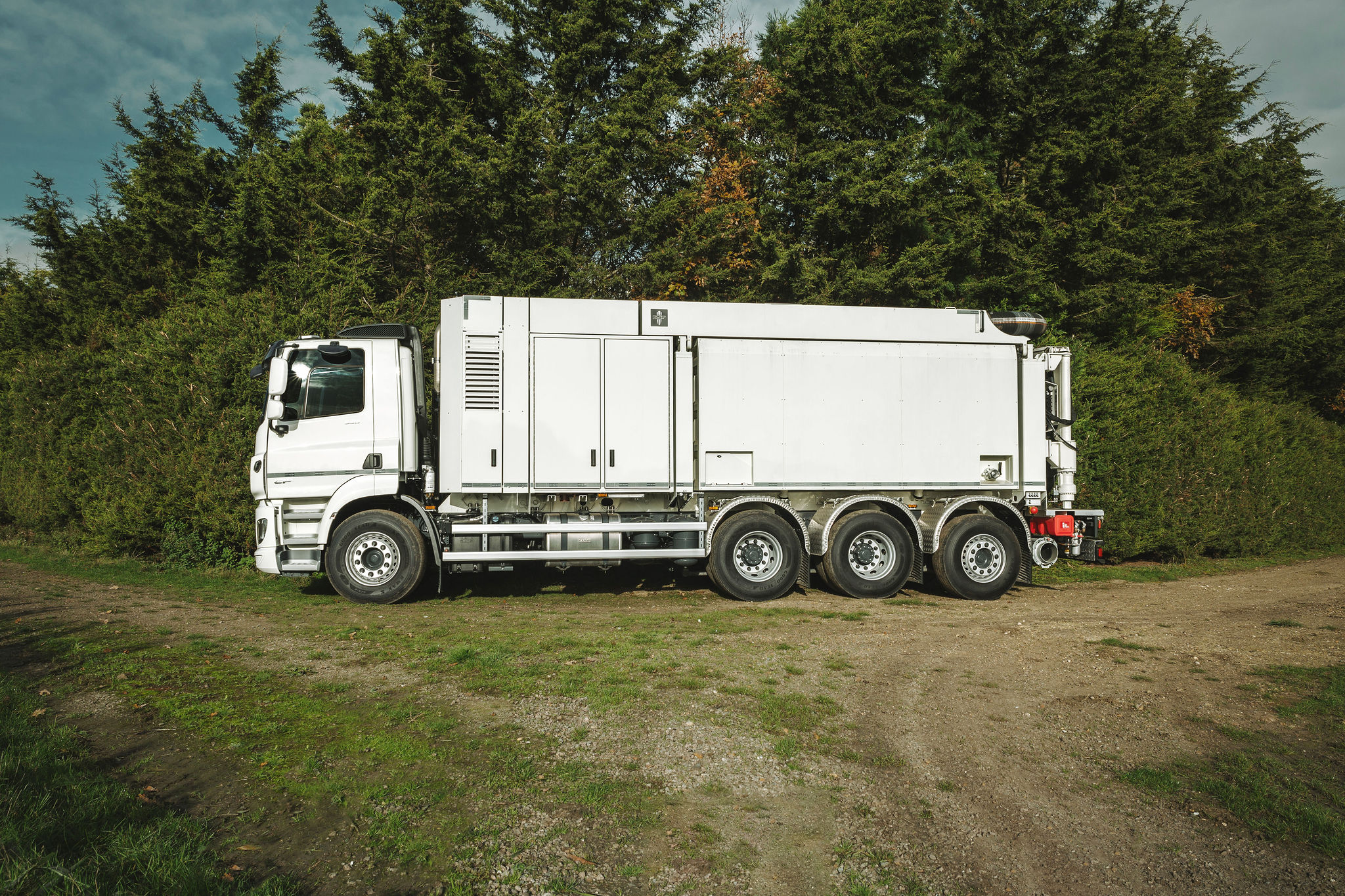 • Chassis Configuration: DAF CFM 530 MX-13 8x4x4, right-hand drive, including audible left turn warning with side scanners; 4 way camera system with DVR recording; 1.2 Metre LED roof mounted blaze bar
